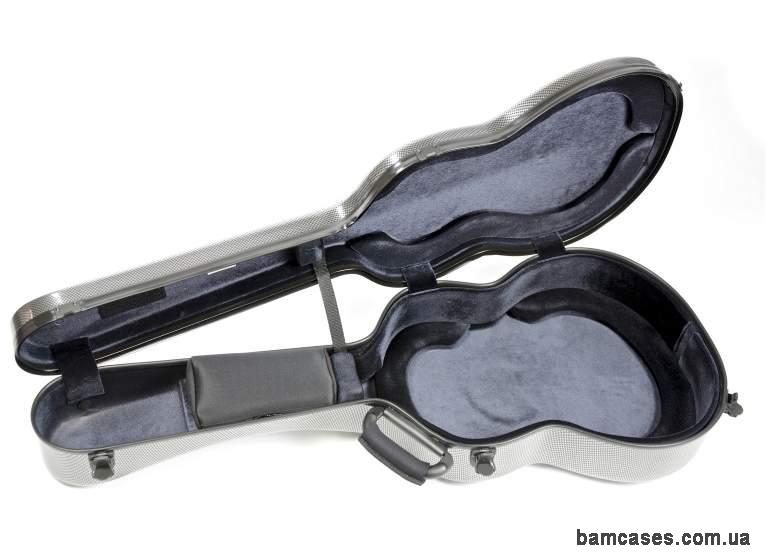 Футляр для классической гитары Bam Hightech Classical guitar, серебристо-черный карбон-дизайн (Silver Carbon look) - оптимальная защита, минимальный вес.